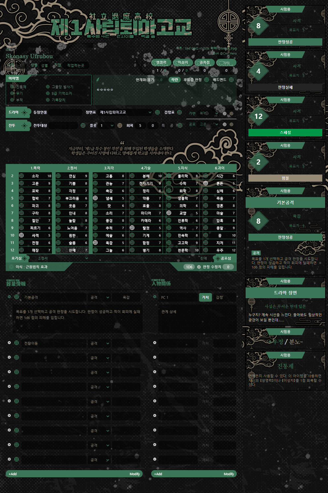 인세인 시나리오 제1사립퇴마고교 세팅자료 배포